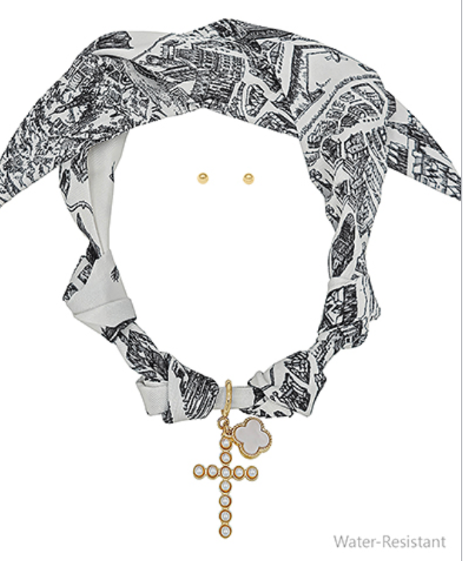 Elevate your style with this Knotted Scarf Necklace featuring an open cross, and a delicate charm. Its unique design blends elegance and edge, making it the perfect accessory to enhance any outfit.
