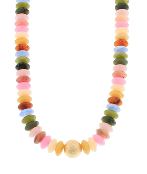 Metal and Color Rondelle Beads Necklace - Multi/Gold