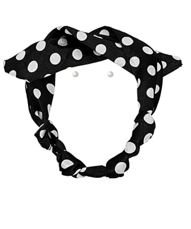 The Dot Pattern Scarf Necklace Set adds a chic twist to your accessories. Featuring a lightweight fabric scarf with a playful dot design and paired with faux pearl stud earrings, this 14" set is an easy way to elevate any outfit.