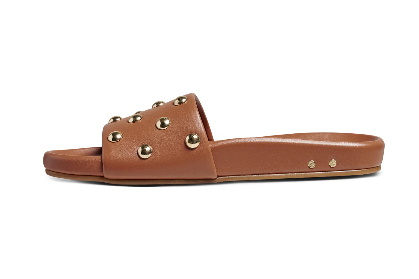 Meet the GALLITO STUD, our top-selling signature slide now with an elevated edge. We've added metal stud detailing that brings a fun and fancy flair to this classic leather-wrapped memory foam molded footbed sandal. With the same commitment to comfort, the molded footbed provides arch and overall foot support while the memory foam gives cushion to the sole. The upper is 100% leather and the outsole is rubber for an easy all-surface grip. It'll easily become your go-to for late dinners outdoors or weekend errands that turn into wine dates.