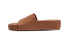 The PELICAN slide is a leather-wrapped memory foam molded footbed platform sandal (now that’s a mouthful!). The molded footbed will provide arch and overall foot support and the memory foam will give cushion to the sole. The upper is 100% leather and the outsole is rubber for an easy all-surface grip