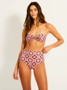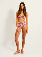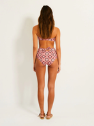 The fully lined high waist bikini bottom offers a flattering and moderate coverage with its low-cut leg opening. The bow tie in the back adds a touch a elegance to the silhouette.