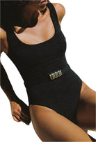 The newest addition to our classic one pieces, the Mandy. Custom hardware built into a removable belt allows you to wear it as a body suit or a swimsuit.