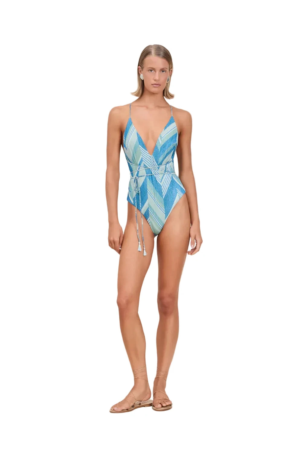 The Uchi is V-cut full-piece with thin, adjustable straps to multi-tie and tassel detailing on the straps. The Uchi has an open back and moderate coverage.