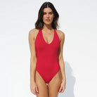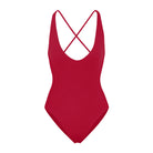 - Medium bum coverage, high cut leg, one-piece swimsuit