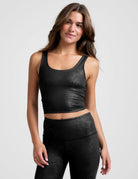 A classic fitted cropped tank design - in a fabric that's anything but basic. Made of our Black Viper PowerShine, with viper-print finish and just a touch of sheen. Think of this as your new studio-to-socialite uniform, complete with a built-in bra for even more ease.