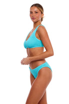Love And Bikinis Classic Barcelona Full Coverage One Size Bikini Top and Bottom is part of our must have Core Collection. With a scoop neck and fixed over the shoulders straps this bikini top and medium to full coverage bikini bottom, this bikini set provides all day comfort with a stretchy fit.