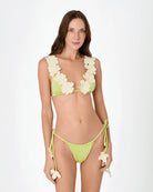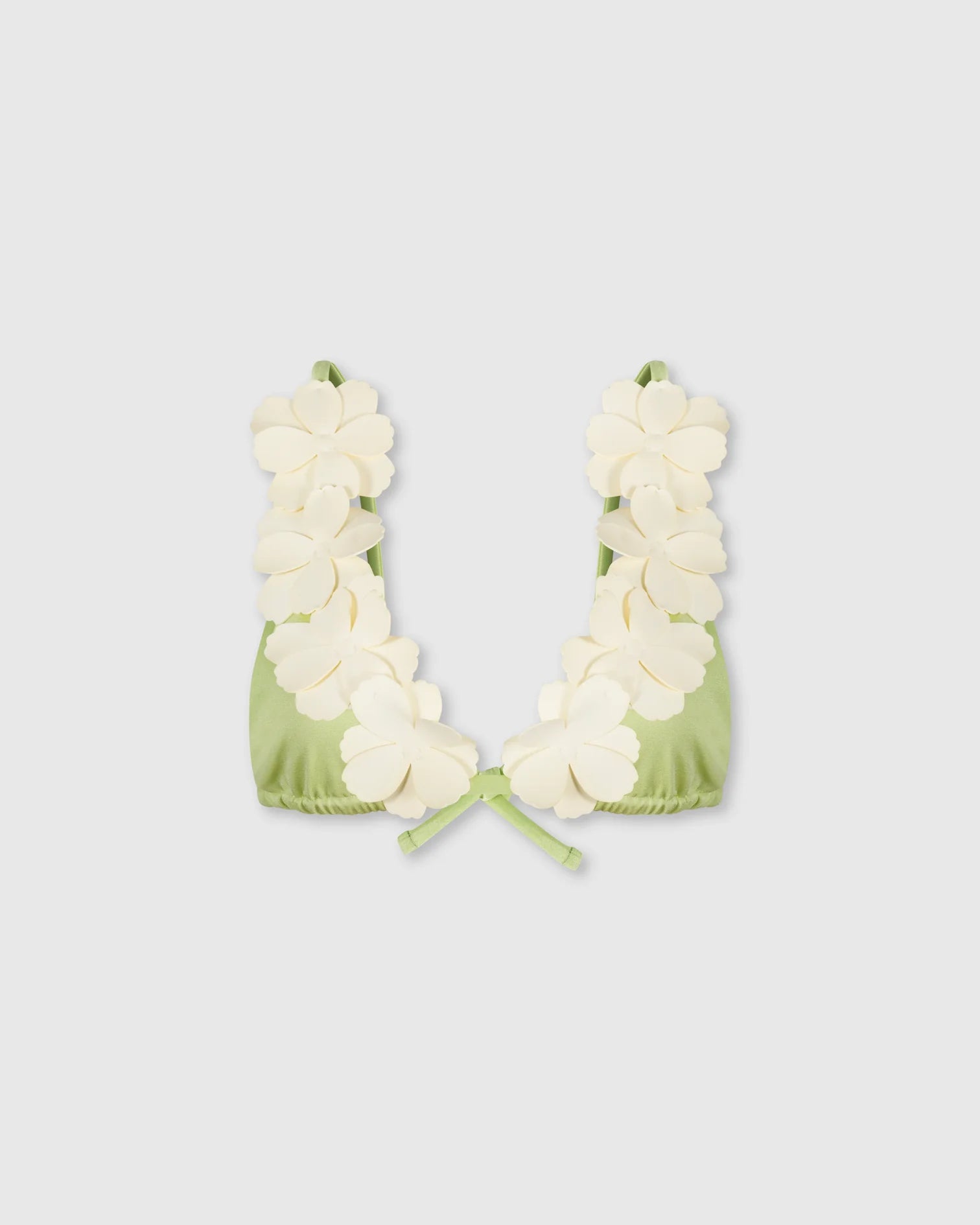 The Federica Top features a simple triangle design with delicate flowers. Perfect for pairing with the Classic Bottom and Federica Skirt for a complete set.