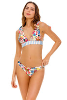 The Laurie Bikini Top offers a flattering halter silhouette with adjustable shoulder ties for a customized fit. Its vivid placement print, influenced by expressive brushwork and artistic details, adds a creative, uplifting touch to your swimwear look. Designed for comfort and support, this piece is available in inclusive sizing for all silhouettes.