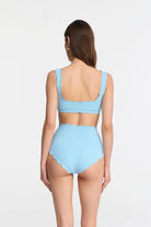The Palm Springs Top is one of our most sought after Marysia Classics. The scalloped edge lines the square neckline. The back emulates the same, with a slightly lower drop. This style is ideal for those who prefer additional support and more coverage. Pair back to any of our scalloped edge Classic bottoms. Featured in our seasonal Air colorway.