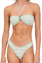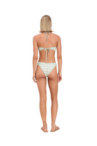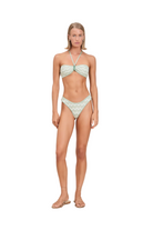 The Portia is a bandeau-style top, with removable pads and beading detail in the front center, and an adjustable tie around the neck. Pairs back with the Paola Bottoms.