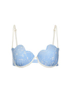 Fixed-cup top with Ancora's iconic silhouette. Blackberry-shaped edges, adjustable straps and back, with gold-plated sliders and rings. EKO®FIBERS made from recycled bottles