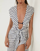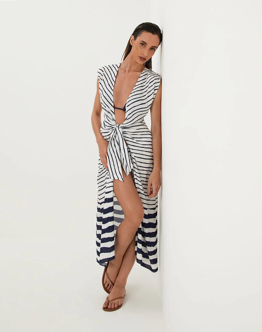 The ViX Sasha Long Cover Up is ideal for transitioning from the beach with style. Crafted from a lightweight cotton fabric, this kimono-style cover up features short cap sleeves, and a split front with tie closures that resemble a knot detail.