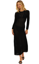 Turn heads in the Dolly Dress — a sheer knit maxi that balances effortless ease with a sultry edge. Designed with long sleeves, an open back, and a body-skimming silhouette, it’s the perfect throw-on piece for beach clubs, resort dinners, or layering over your favorite Cabana swim.