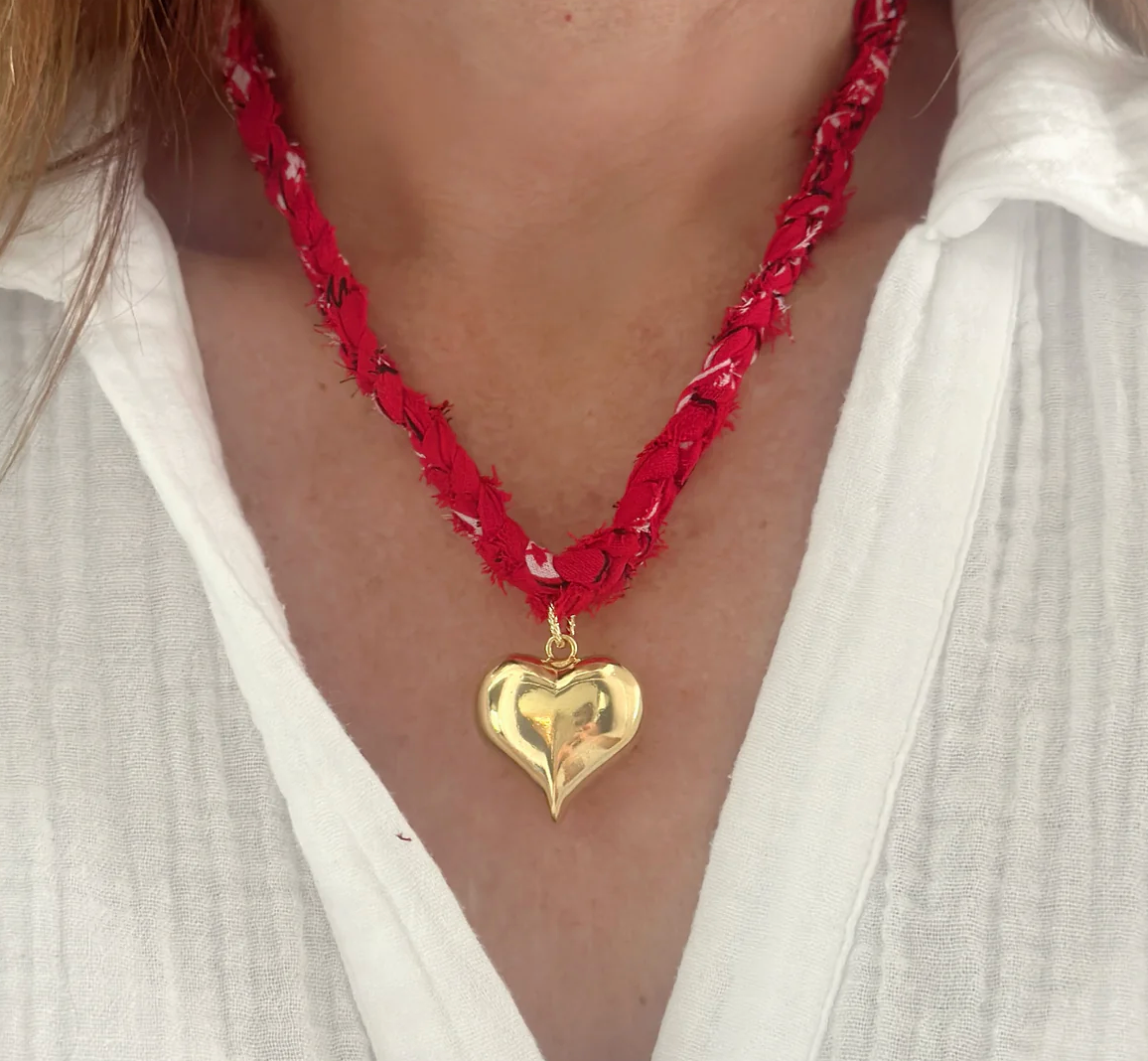 Heart Bandana Necklace - Red