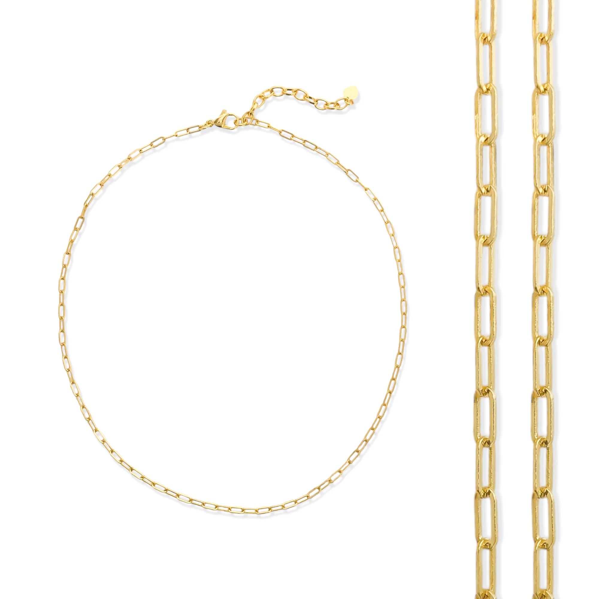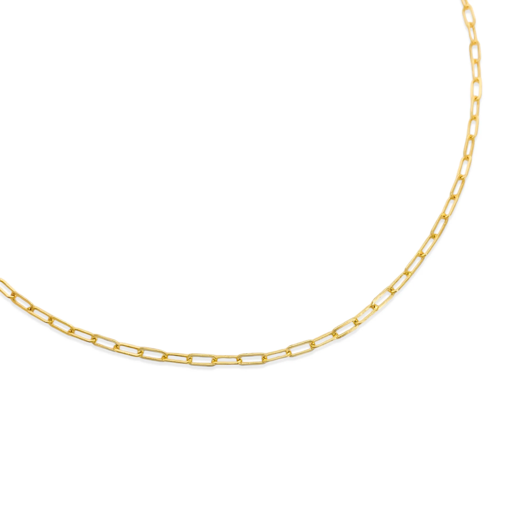 Our versatile paperclip chain necklace comes in 16" and 18". The classic design looks equally sophisticated worn alone or accented with your favorite charms. This necklace offers the perfect foundation for your charm bar collection or stands beautifully on its own as a modern essential.
