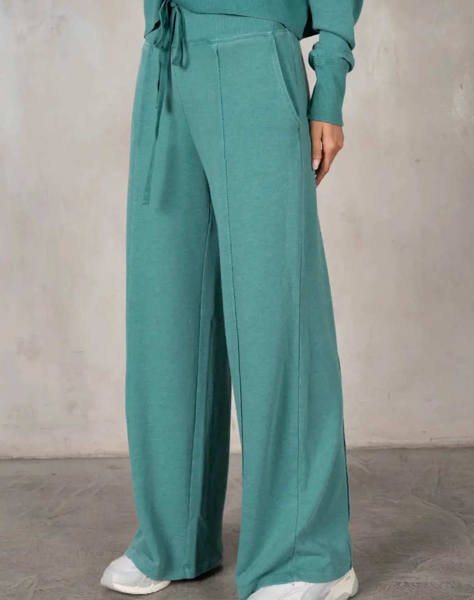 High Rise Wide Waistband CP Terry Sweatpants with Raw Edge Seam Details