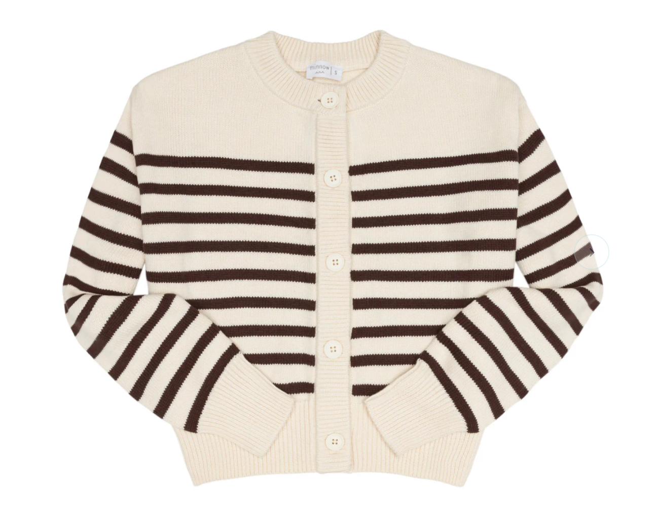 our best-selling knit pullover is now a classic button-front knit cardigan in the perfect stripe. this cozy seaside staple is ultra-soft and perfect for layering, in a relaxed fit. pair with any of your minnow favorites or our knit pants for a look that can go everywhere.