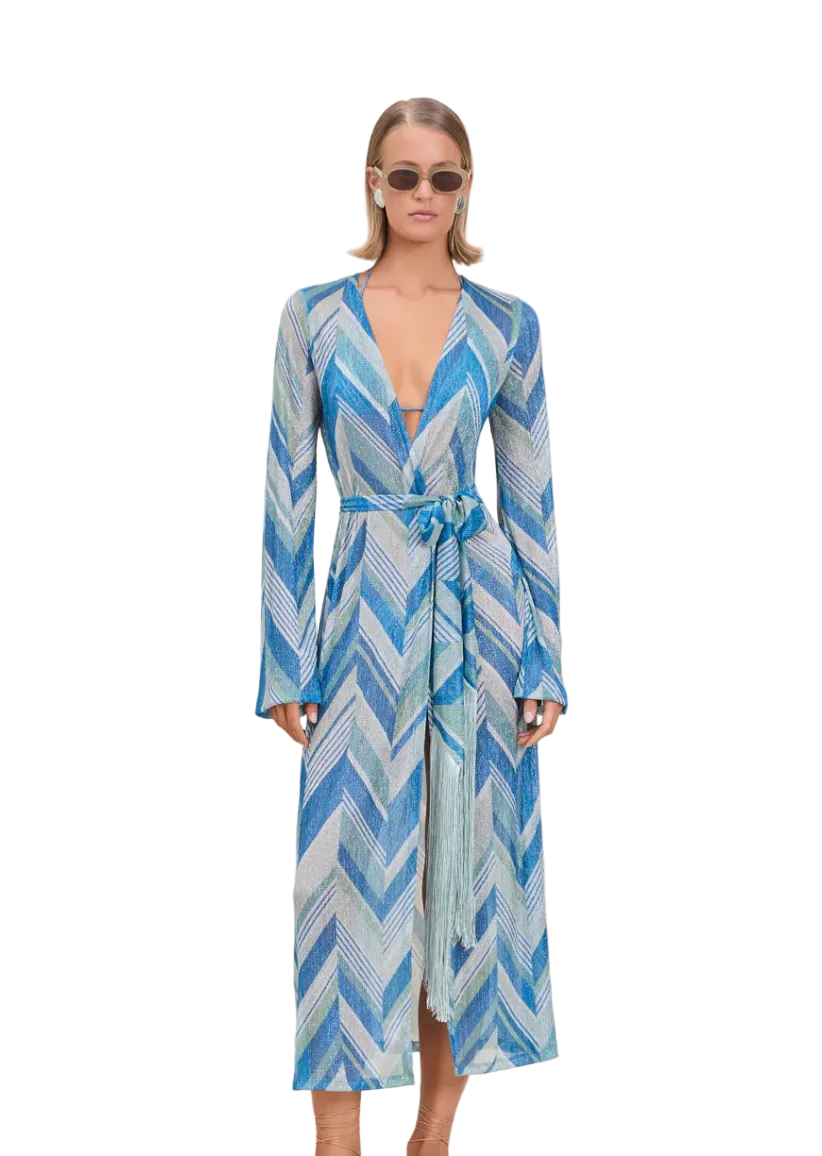 Tori Ties Bandeau Bikini Top - Blue Stripes