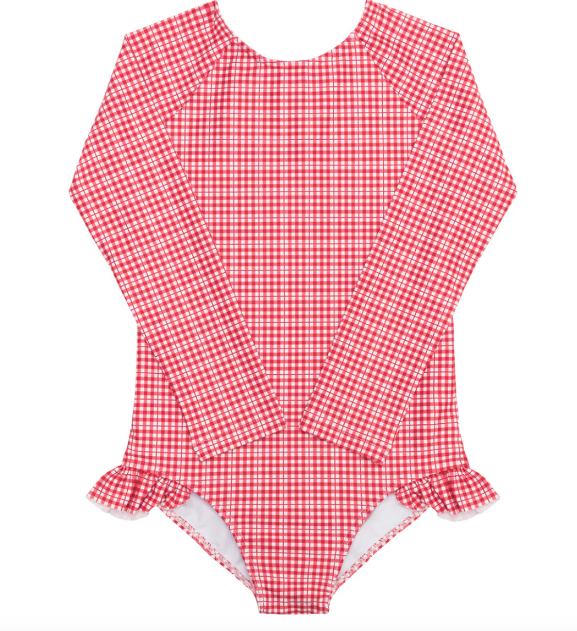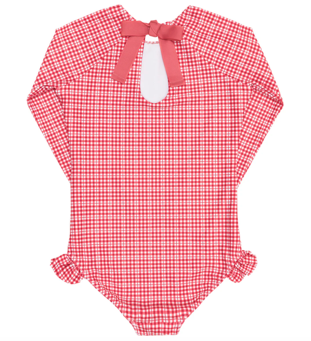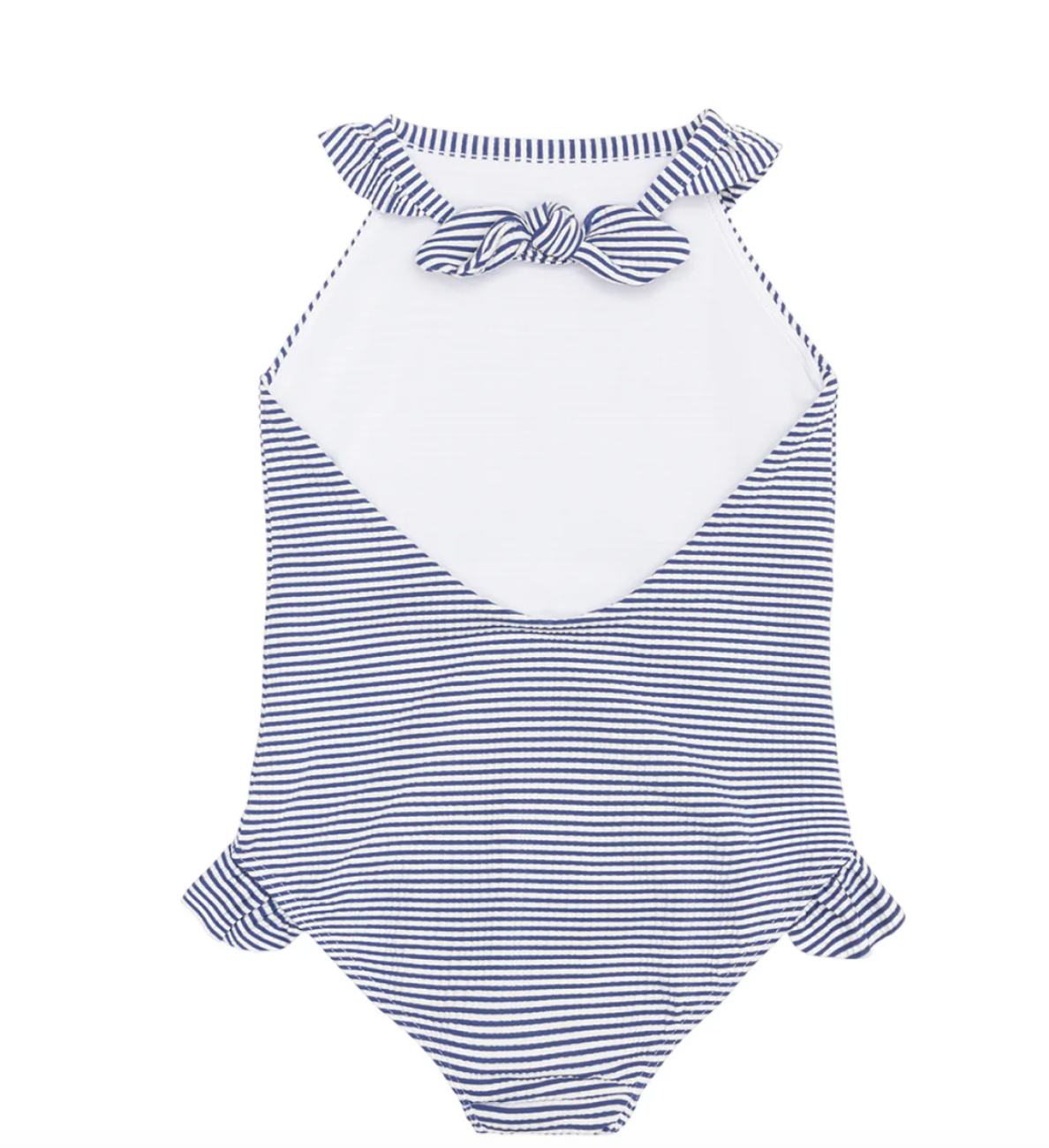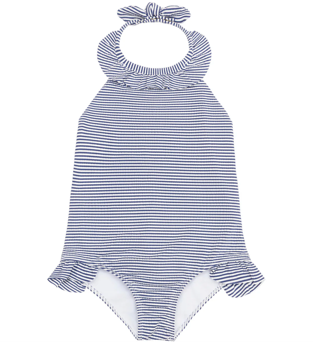Girls Ruffle Halter One Piece - Harbor Stripe