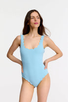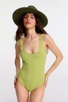 The Palm Springs Maillot is one of the most sought after maillots, with its classic shape, scooped neckline and plunging back. The hand cut, raw edge signature scallops trim the neckline, legs and hips. Also comes in a Long Torso version for those with lengthier upper bodies.