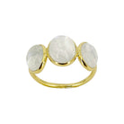 3 micron gold-plated ring with three beautiful stones set in yellow, pink and green tourmaline and white and gray labradorite, amethyst, pink quartz and prehnite. This ring is also available in silver for white and gray labradorite, rose quartz, prehnite and amethyst. A real favorite for lovers of pretty stones. A timeless and chic ring