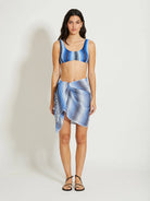 This sarong is designed to be worn a number of ways: as a scarf around the neck; a cover-up around tie around the chest; a pareo tied around the waist or laid flat as a beach blanket, this versatile style is a beach wear essential.