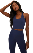 Introducing our new Matte Core Fabric! This fabric has a super soft feel, brushed finishing, moisture-wicking properties, and excellent stretch and recovery. It's sure to be your new go-to active favorite. The Yara Top is a cool crop top with a longline silhouette, scoop neckline, and razor back detail. It has a built-in shelf bra and removable bra pads, making it the perfect versatile top for workouts and everywhere in between. Available in our soft Ultramarine navy colorway. Pair this top with the matching Piper Legging in Ultramaine Matte.