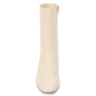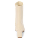 Vegan faux leather ankle boot with a pointed toe, slim mid-heel, and minimalist silhouette