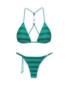 The ViX Alba T Back Tri Top is a traditional triangle bikini top adorned with the silver Alba detail that mimics the shape of a fishing hook. Customize your support by tying the cords to your liking at the back.