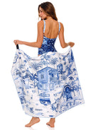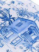 A luxurious beach towel featuring intricate blue and white prints inspired by coastal scenery and floral patterns. Soft and stylish, perfect for poolside lounging or seaside relaxation. Measurement: