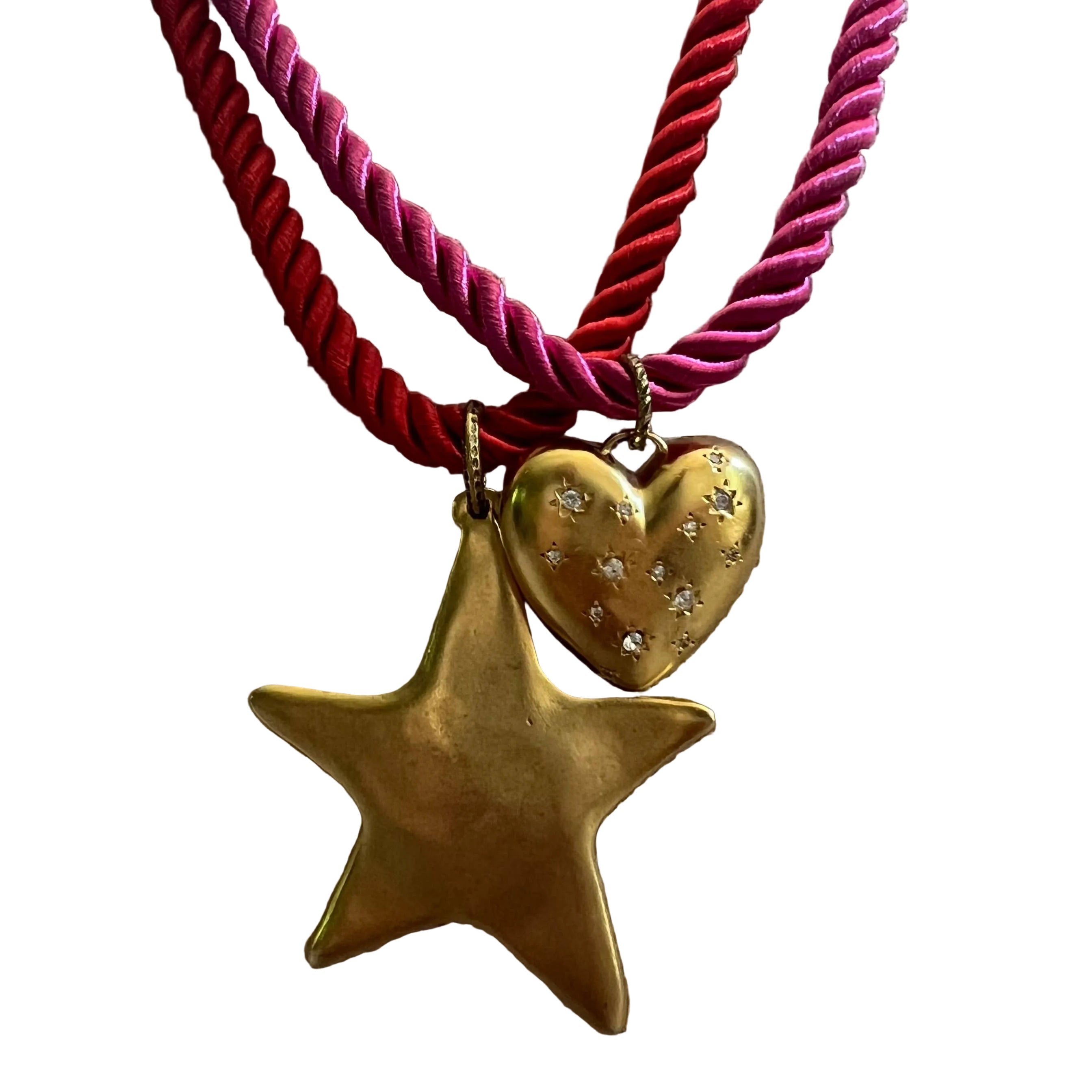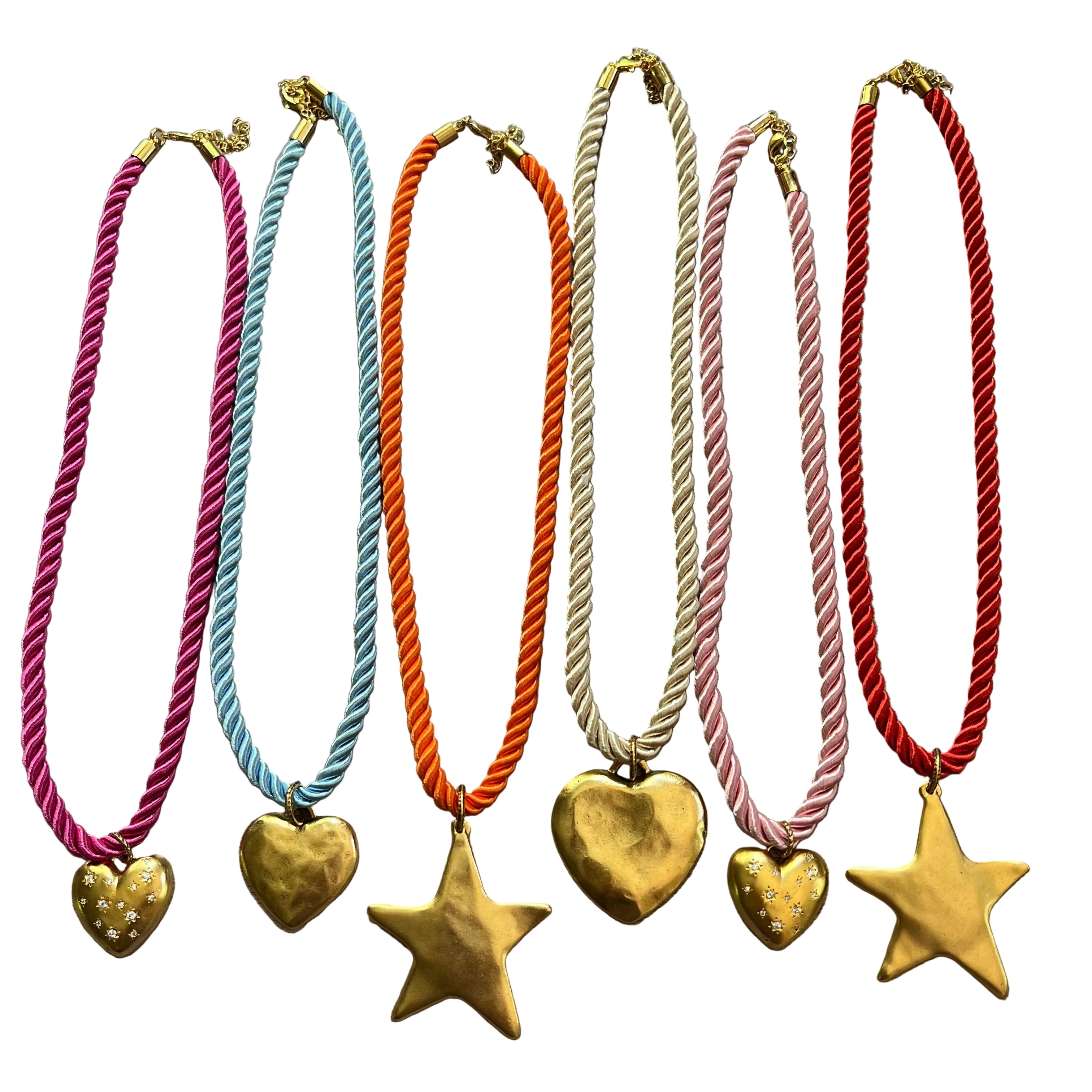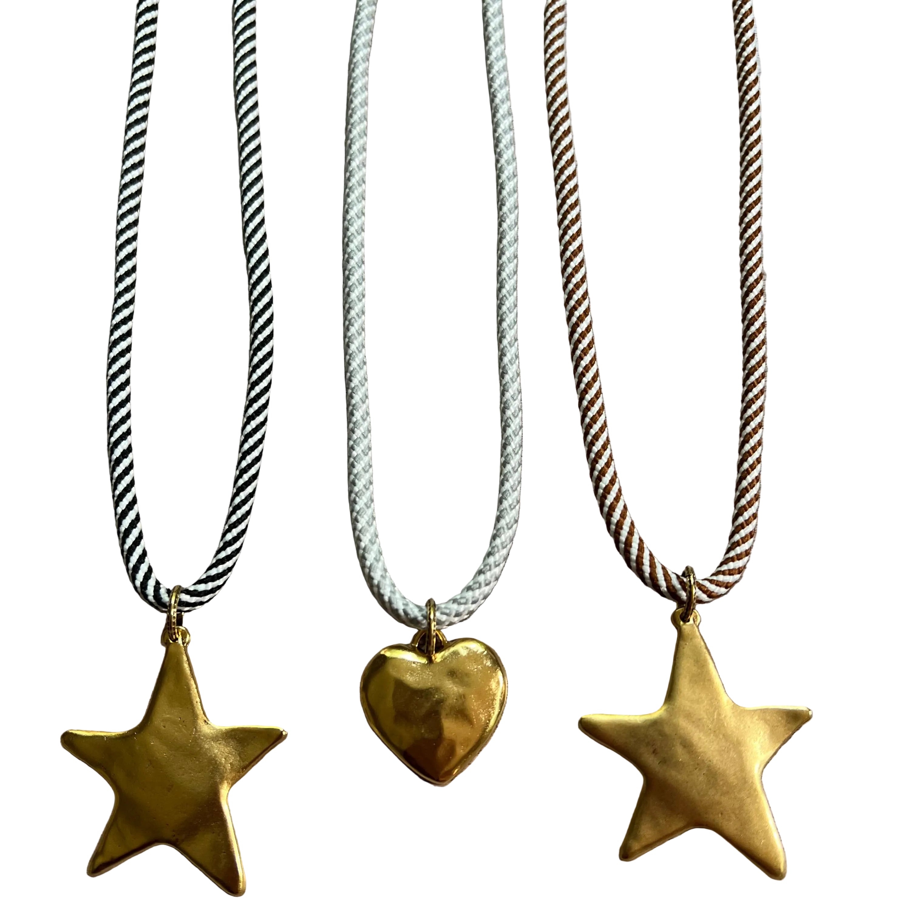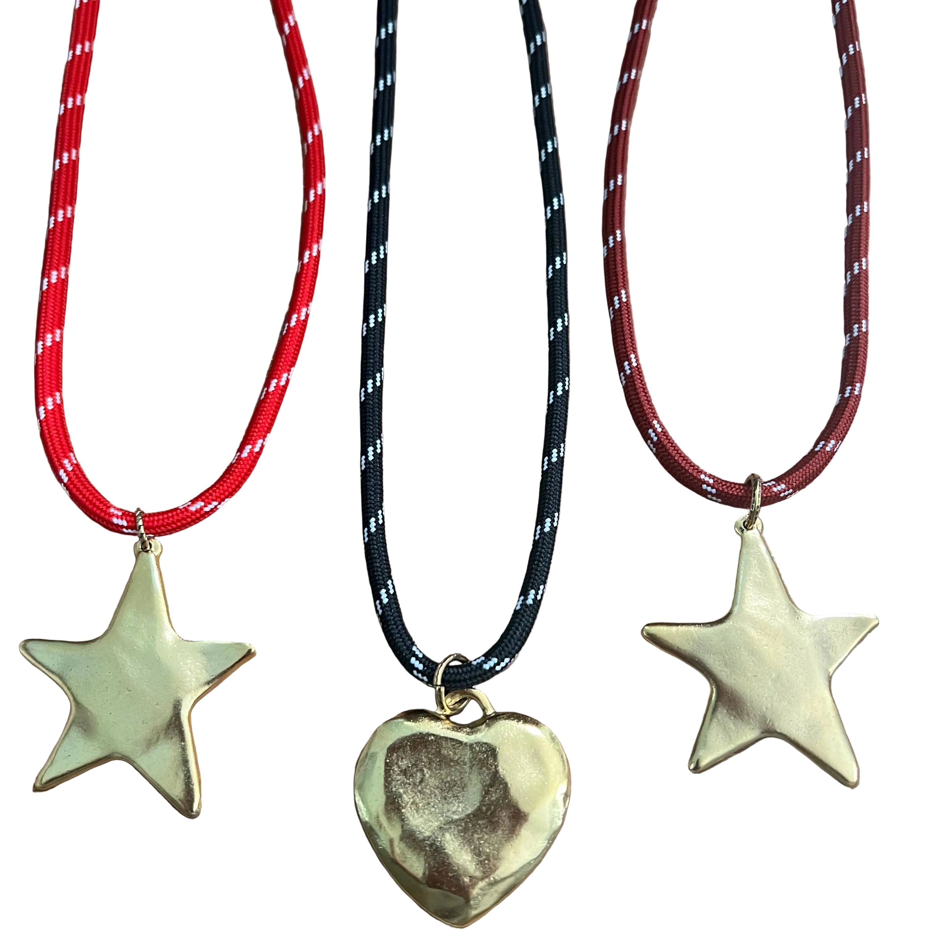 Cord comes with 4 different charm choices: 43mm large star, 28mm small or 38mm large hammered heart, and 19mm cz sparkle heart.
