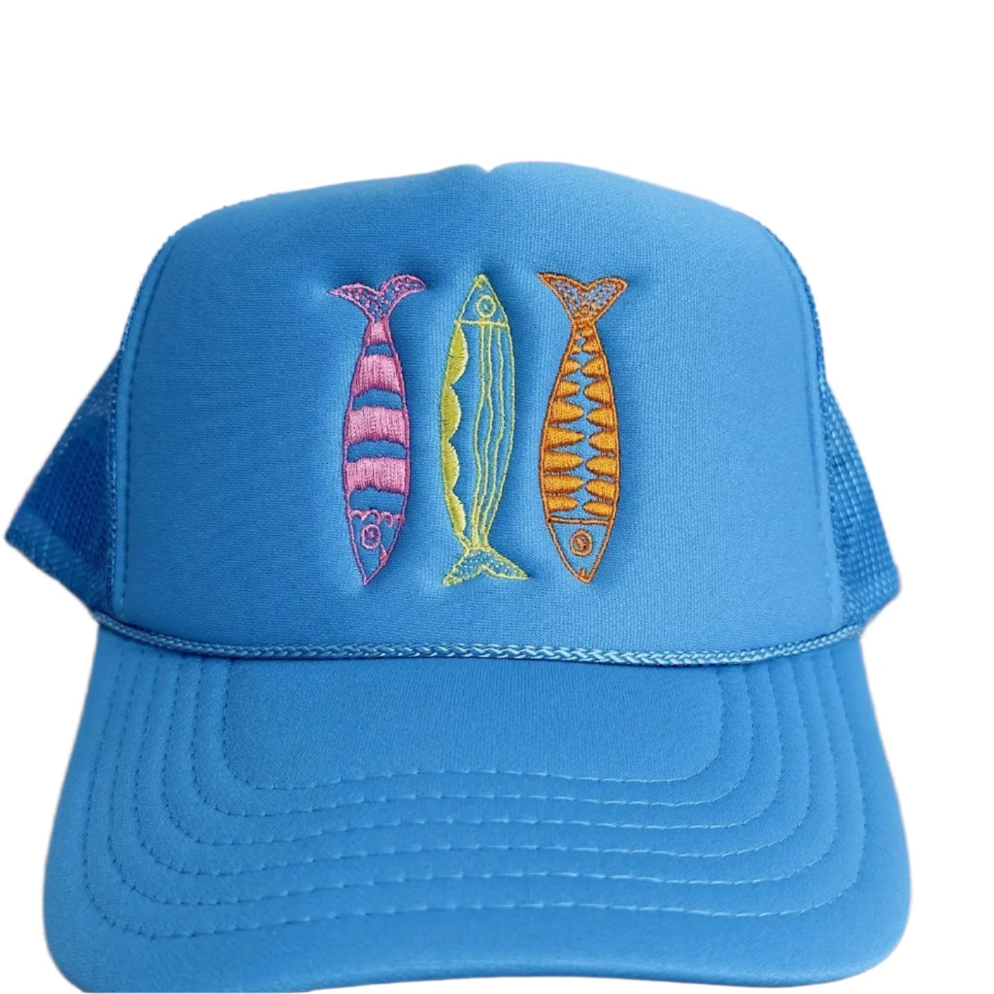-Blue: Blue hat with pink, yellow, orange fish