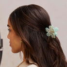 We have upgraded our bestselling Lily claw clip to a pave design. Use it to elevate the classic half-up hairstyle.