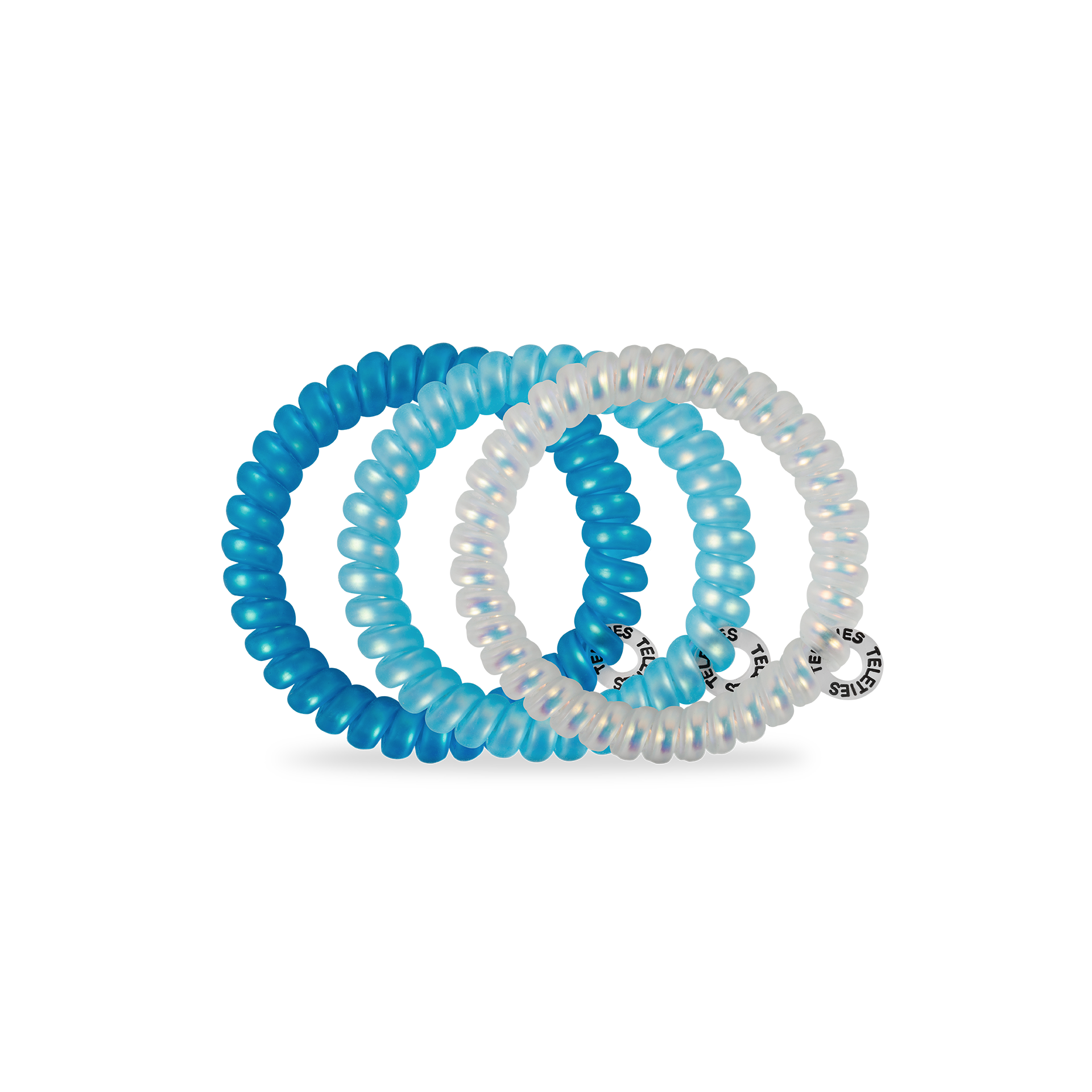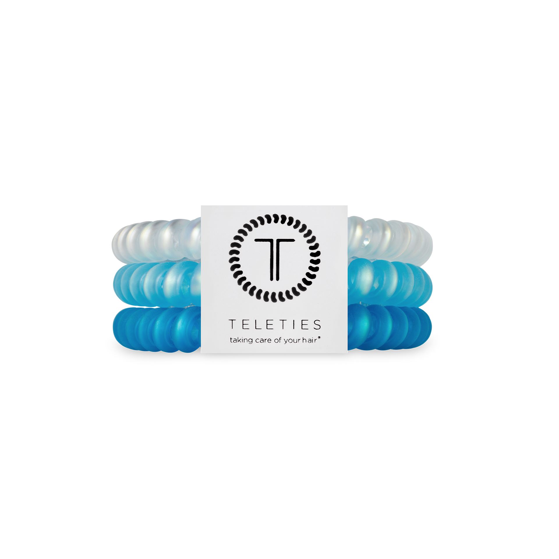 Hold your hair in place with ease and style! TELETIES Blue Seas Small Hair Ties offer a strong grip without damage, doubling as a chic wrist accessory when not in use. Your new favorite hair essentials for Spring Break and Summer!